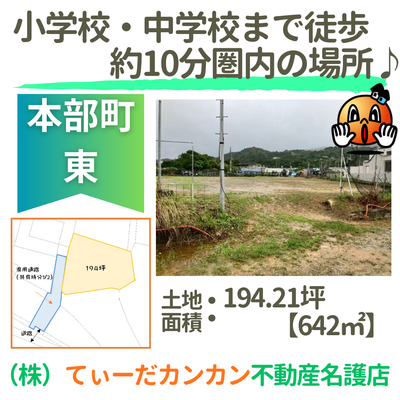 本部町東に土地でました~♪平坦地!本部小学校近く♪お問い合わせお待ちしております★